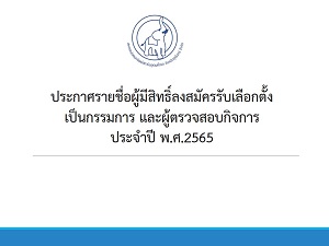 ประกาศรายชื่อผู้มีสิทธิ์ลงสมัครรับเลือกตั้งเป็นกรรมการ และผู้ตรวจสอบกิจการ ประจำปี 2565