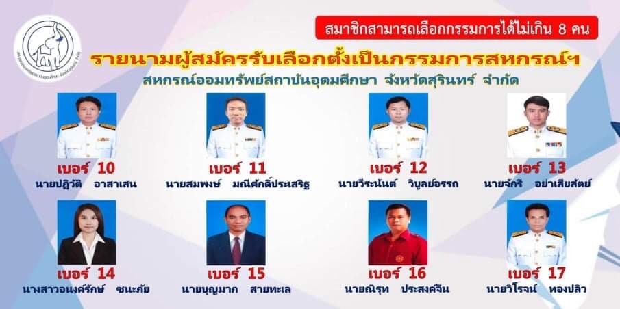 อเชิญสมาชิกสหกรณ์ออมทรัพย์สถาบันอุดมศึกษา จังหวัดสุรินทร์ จำกัด