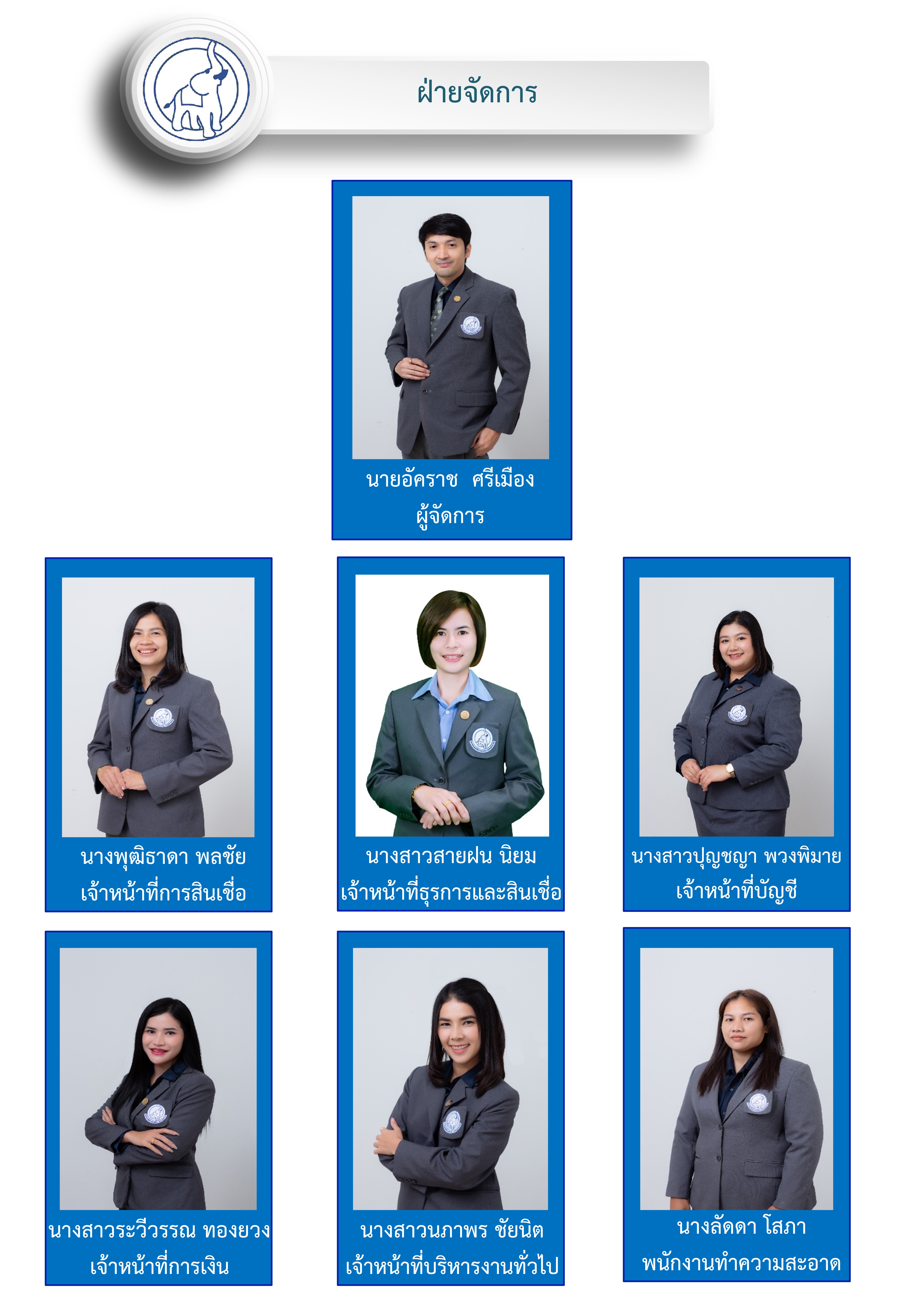 | 4 | นางสาวสายฝน นิยม | เจ้าหน้าที่ธุรการและสินเชื่อ |