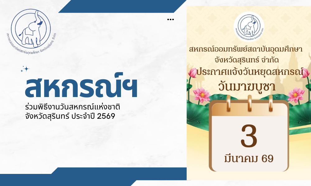สหกรณ์ออมทรัพย์สถาบันอุดมศึกษา จังหวัดสุรินทร์ จำกัด ประชาสัมพันธ์วันหยุดประจำเดือน กุมภาพันธ์ 2569 ตามระเบียบฯ ของสหกรณ์